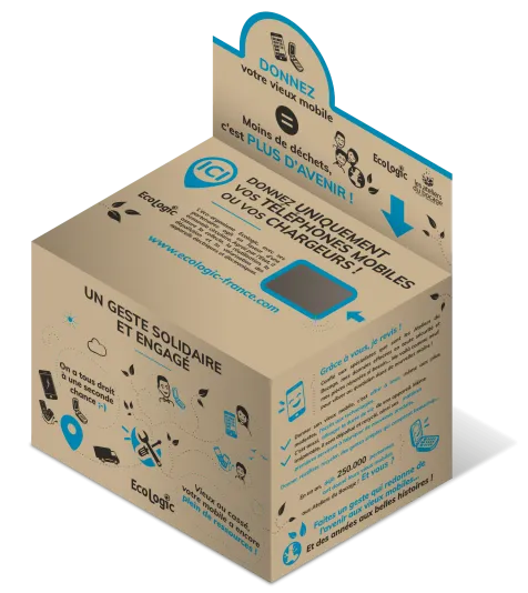 C’est simple : votre box vous permet de collecter vos anciens téléphones portables, ainsi que ceux de vos collaborateurs, qui sont ensuite remis en état (lorsque cela est possible) et distribués aux foyers les plus modestes.